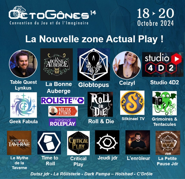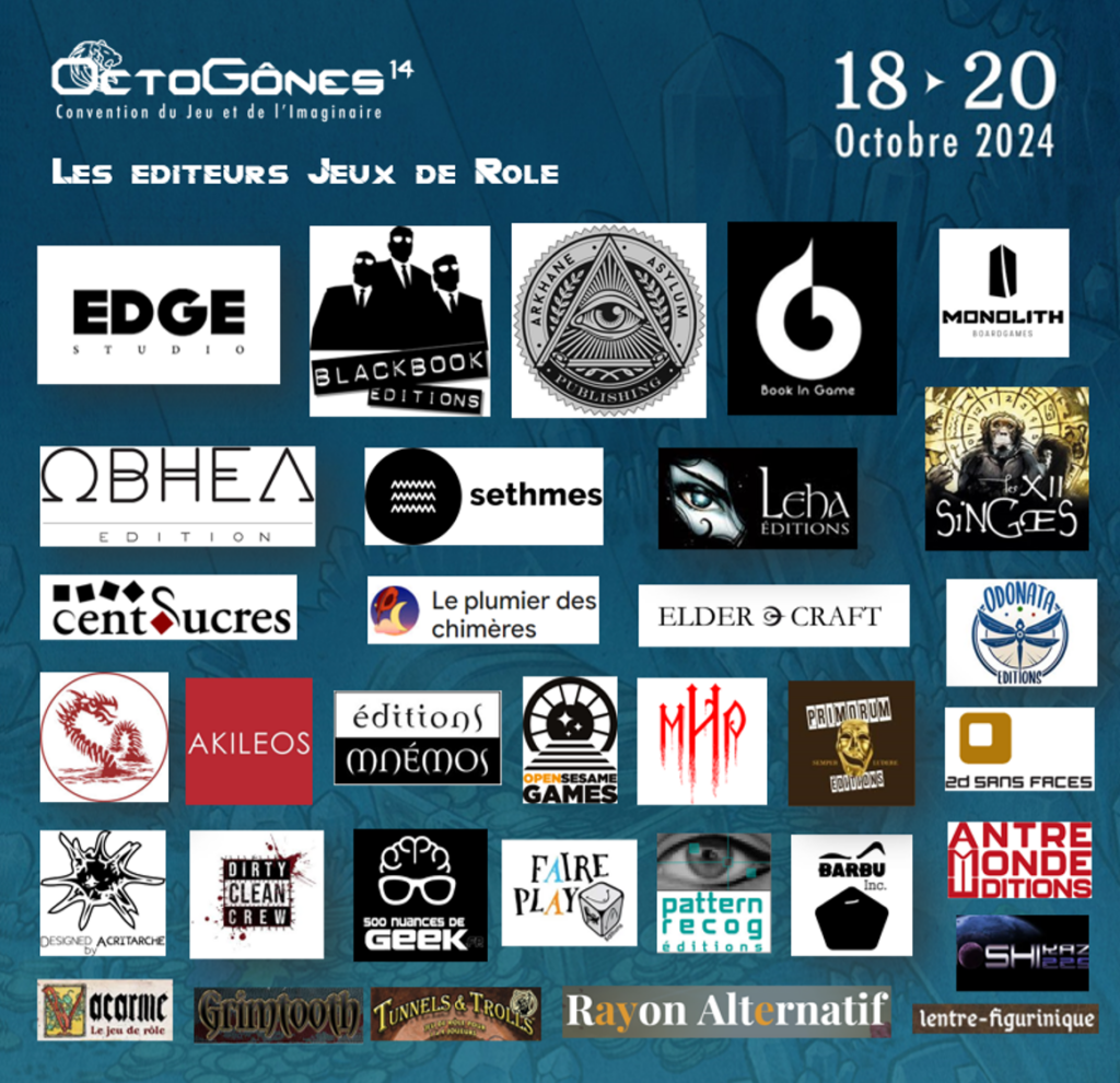 OctoGônes est heureux de vous proposer une rencontre exclusive avec ceux qui façonnent le monde rôliste en ce moment : des auteurs de jeux de rôles en cours de création et des projets originaux liés au jeu de rôles ! Venez découvrir ces jeux de rôles originaux qui seront peut-être les indispensables de vos ludothèques de demain. Vous pourrez ainsi échanger avec les auteurs, découvrir les dessous de la création d’un jeu et vous renseigner sur les projets rôlistes en cours !